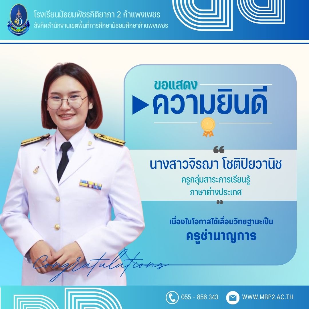ประกาศโรงเรียนมัธยมพัชรกิติยาภา ๒ กำแพงเพชร เรื่อง การรับสมัครนักเรียนเขEาเรียนชั้นมัธยมศึกษาปIที่ 1 และชั้นมัธยมศึกษาปIที่ 4 23 ก.พ. 68