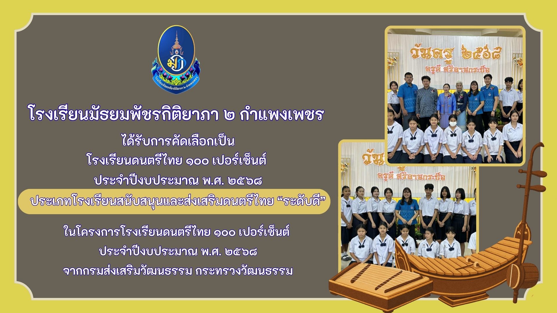 ประการศโรงเรียนมัธยมพัชรกิติยาภา ๒ กำแพงเพชร เรื่อง แผนการจัดซื้อจัดจ้าง ประจำปีงบประมาณ ๒๕๖๘ 23 ก.พ. 68