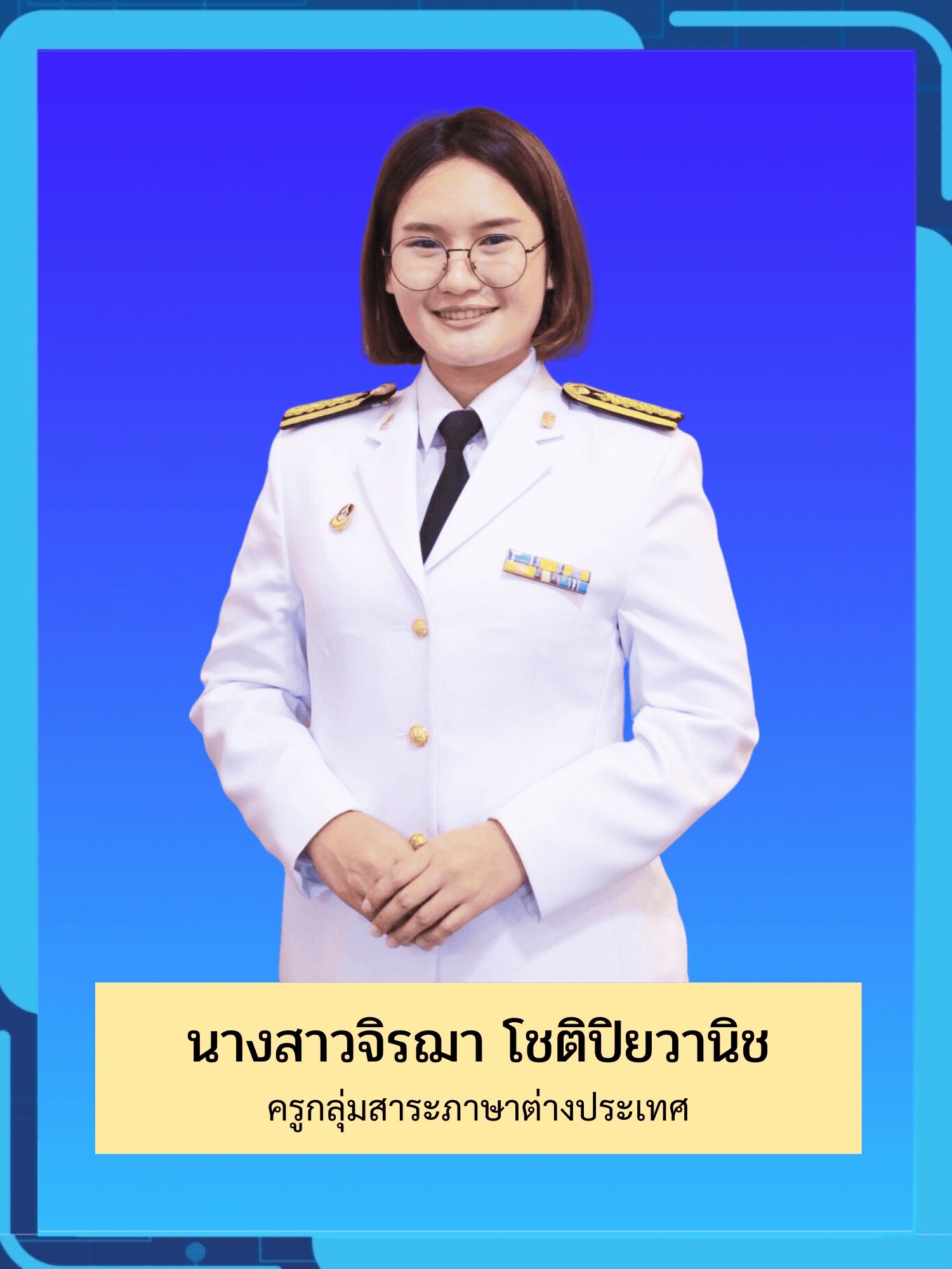 นางสาวจิรฌา โชติปิยวานิช ครู คศ.1 หัวหน้ากลุ่มสาระการเรียนรู้ภาษาต่างประเทศ